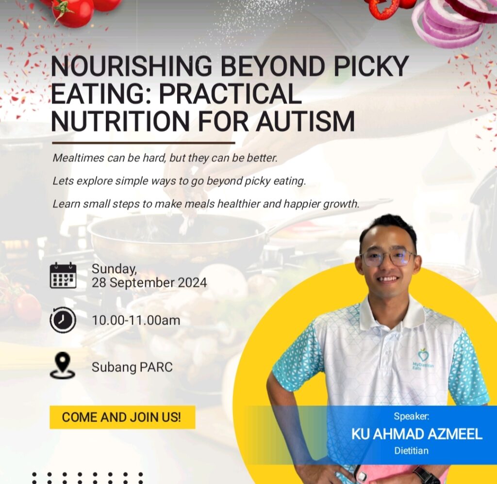 Attended a SEED-hosted community event as a vendor, delivering a health talk titled “Nourishing Beyond Picky Eating: Practical Nutrition for Autism” and setting up a booth to share educational booklets and high-fibre juices. Date: 28 September 2025